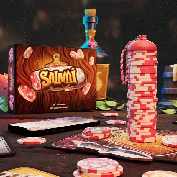 Salami is a fast-paced hybrid party game that plunges players into the lively atmosphere of a bustling tavern.