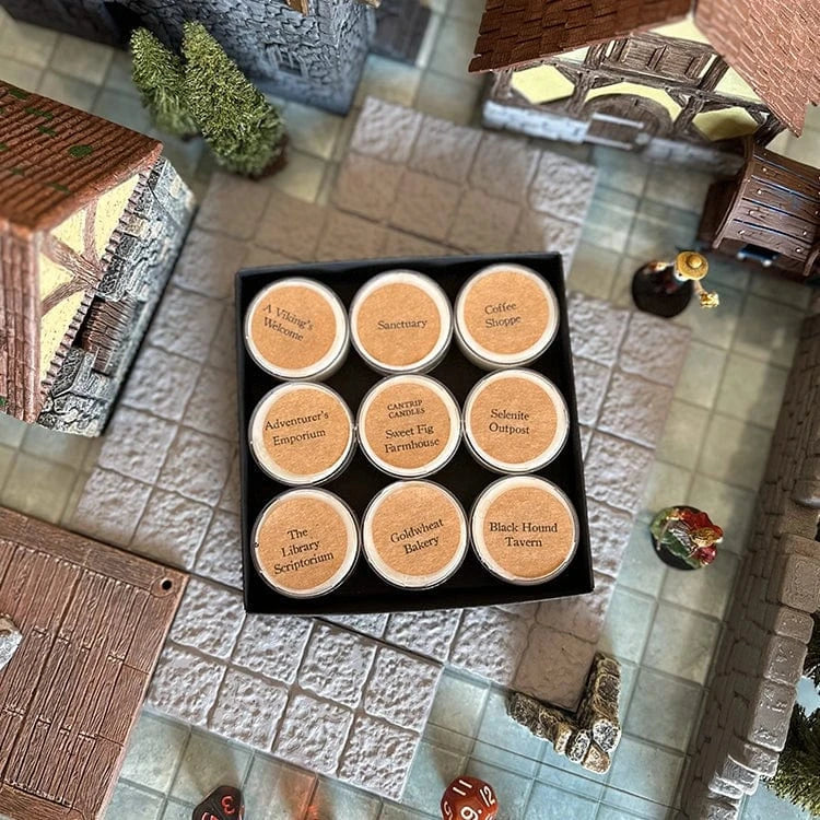 Every captivating story needs unforgettable destinations. From sacred temples to rowdy taverns, our Scents of Civilization collection captures the essence of man-made wonders. Each pack includes nine randomly chosen scents from the selections below. Every set is a new adventure waiting to unfold. Includes nine 0.5 oz tealights poured in Los Angeles from the list below: Adventurer's Emporium Autumn Festival* A Viking's Welcome Black Hound Tavern Coffee Shoppe Den of Thieves Goldwheat Bakery Honeyswell Meadery Library Scriptorium Norse Foundry Sanctuary Sweet Fig Farmhouse Selenite Outpost And More . . .