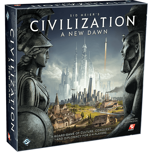 Designed by James Kniffen, Sid Meier’s Civilization: A New Dawn is a turn-based strategy board game for two to four players. As leaders of competing nations, players must expand their domains, gain new technologies, and build wonders to rise above all others and shape the world to their own vision. By balancing their nation's pursuits, leaders can build a new society greater than any that has come before and guarantee that their people will not only survive, but thrive.