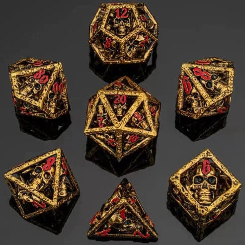 HY00163: Skull's Grin Hollow Metal Dice Set - Gold with Red