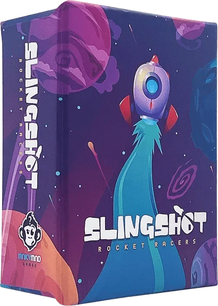 The annual Kylor System race has arrived, and only the finest pilots dare to enter. But who will prove to be the best racer in the galaxy? Strap in and navigate your way through the system, completing each planet's orbital requirements to slingshot your way to victory! “Slingshot” is an exhilarating dice-rolling game of planet-hopping rocket racing. Match the orbits, spend your bounty, and aim for the win. Players take turns rolling dice to advance their rockets past each Planet in the system. The dice must meet the various orbital requirements for Crew, Power, Hull, and the ship's Trajectory for each Planet. Make sure to utilise your pilot's abilities by spending the Kylor Crystals you have collected, and watch out for Asteroids if they are in play. Be the first rocket racer to pass the last planet and claim victory!.