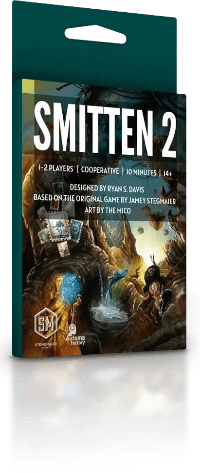 Smitten 2 is a cooperative micro-game for 1-2 players. The 9 new cards in this standalone sequel are designed by Ryan S. Davis. In Smitten 2, players work cooperatively with limited information/communication to complete two identical 3×3 grids of cards, each inspired by Stonemaier games released since the original Smitten and illustrated by The Mico. There are multiple difficulty levels and separate modes for solo and 2-player games.