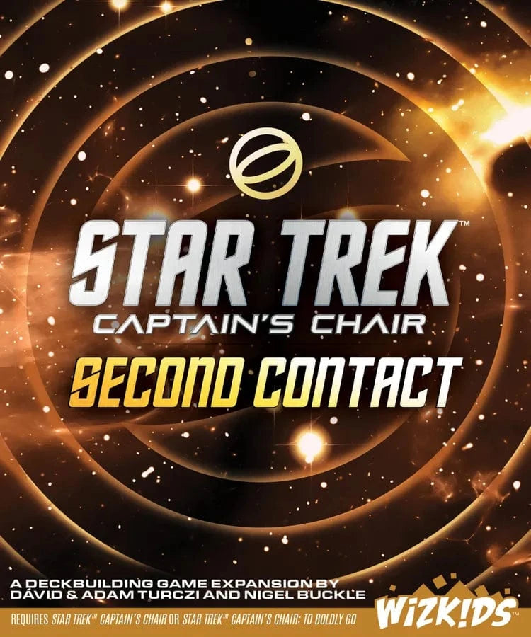 Star Trek: Captain's Chair – Second Contact contains three new captains that can face off against those in the original game, against those in To Boldly Go, and against one another, but you'll need common cards from one of the base games. Two of the captains are Carol Freeman, Captain of the U.S.S. Cerritos, and Christopher Pike, Captain of the U.S.S. Enterprise, and you can also add Krulmuth-B as a starting location, opening a portal that crosses space and time!