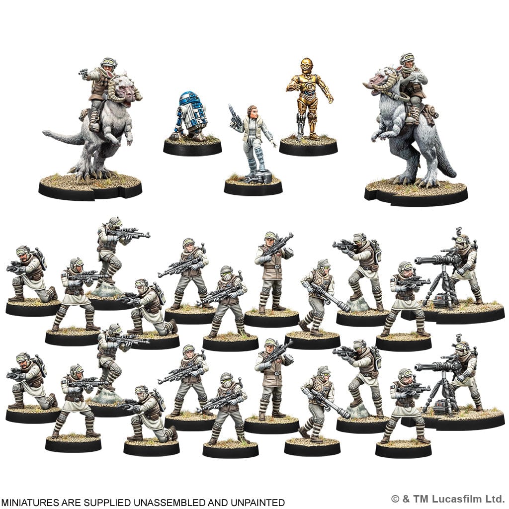 This Echo Base Defenders Special Edition Starter Set contains a 600-point Recon-level army, including a Special Edition alternate sculpt General Leia Organa. It also includes all the dice, templates, tools, and tokens a player needs to begin playing their first games of Star WarsTM: Legion.