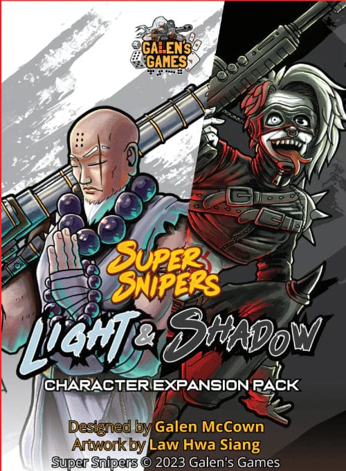 Two new Super Snipers enter the battlefield! SUBHUTI is a monk whose mastery of his mind allows him to accumulate his opponent’s Focus and use it to turn the tied of battle. J@[\]u5 is a mind-hacker capable of shutting down their opponent’s powers for short periods of time and stealing their basic ability when enraged! This is an expansion for Super Snipers and requires the base game to play. It includes 6 cards (Basic and Adrenaline for both Characters and their AI versions) and 6 acrylic Hiding Discs.