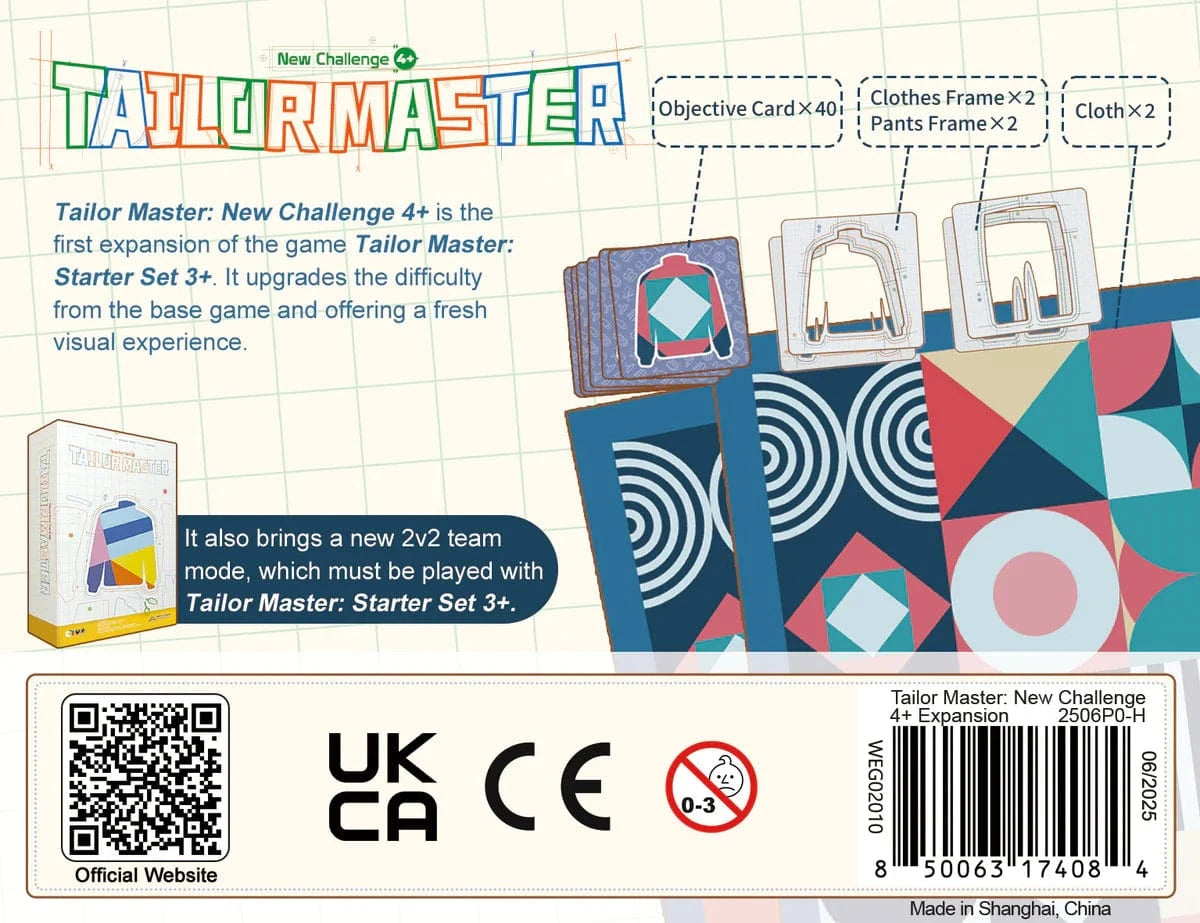 Tailor Master: New Challenge 4+ is the first expansion of Tailor Master: Starter Set 3+. It upgrades the difficulty and is suitable for children aged 4+ and adults. The cloth in this expansion features more circular and ring-shaped patterns, with cyan, magenta, and navy blue as the main color schemes, bringing a new visual experience.