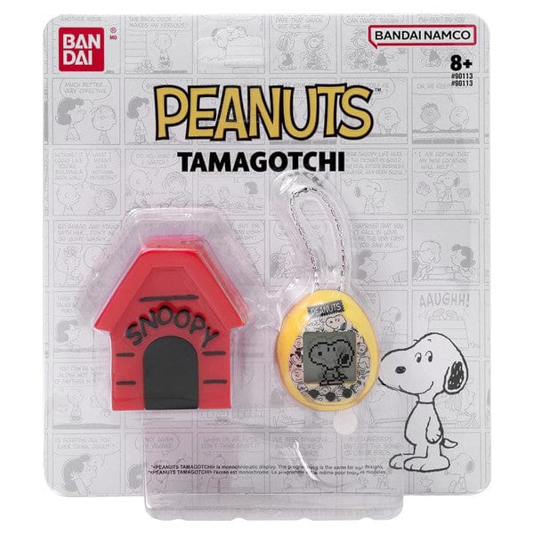 Tamagotchi and Peanuts join forces for the ultimate adventure featuring Snoopy! Users can feed, play with, and care for Snoopy in a pocket-sized digital pet experience. Depending on how well you care for Snoopy, you may see his outfit change or even get a surprise visit from Woodstock or his fellow bird Harriet! The device includes three mini-games: WRITE THE GREAT AMERICAN NOVEL, BEAGLE SCOUTS, and SNOOPY'S SUPPERTIME. Keep the Peanuts gang happy by feeding Snoopy dog food or a donut snack, while Woodstock and Harriet are nourished with seeds and water. Don't forget to look out for 12 special comic strip scenes that appear every hour, where you might even catch a glimpse of other beloved Peanuts characters like Lucy, Linus, or Pigpen! The Peanuts Tamagotchi Nano also comes with Snoopy’s red doghouse silicone case, offering a stylish and protective way to carry your device. If you don’t take good care of your virtual pets, expect a farewell letter accompanied by cute paw prints.