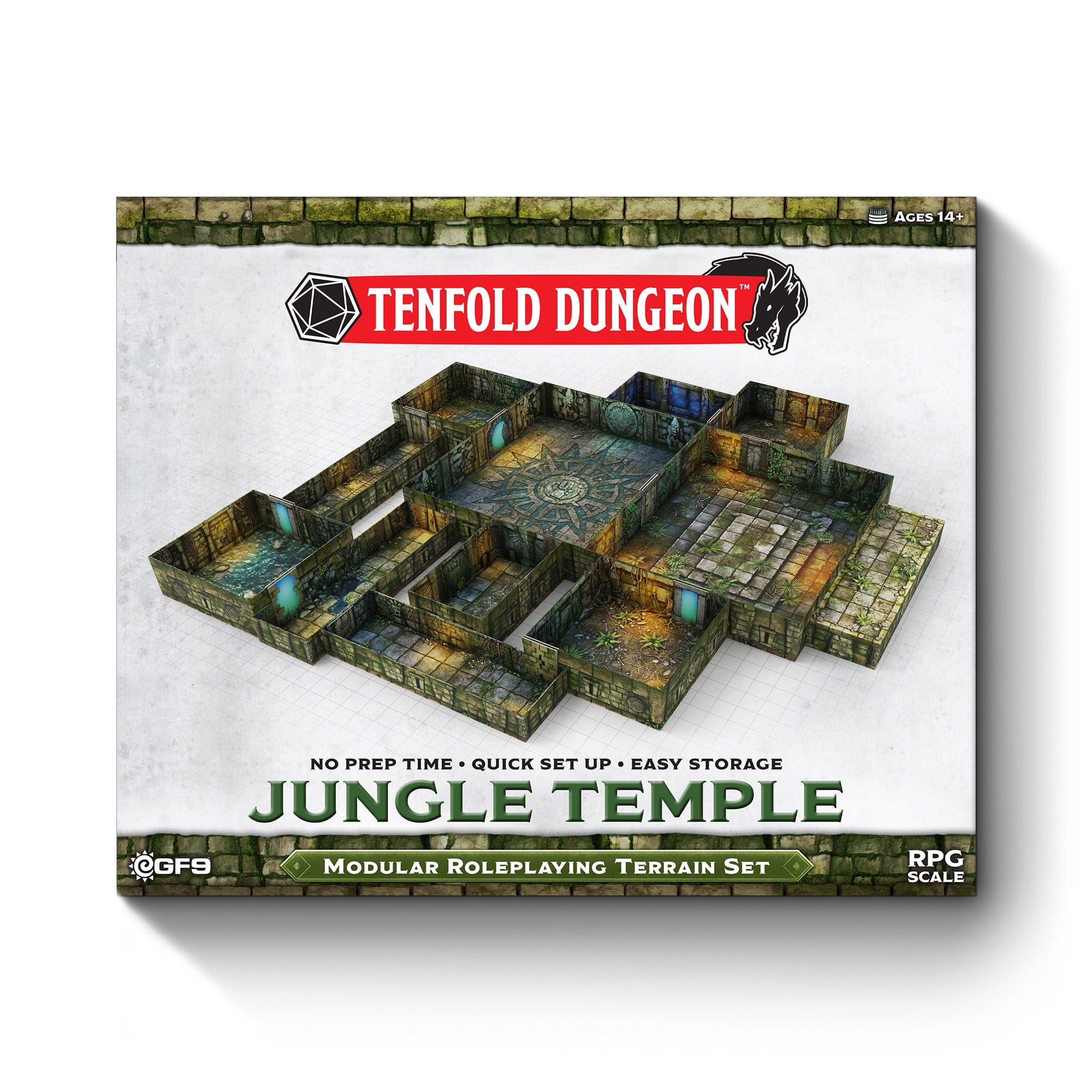 With amazingly detailed art printed in every box, and 1” x 1” grids discreetly layered into the environment, Tenfold Dungeon provides a high-quality, atmospheric play space for all your tabletop needs. Along with its its compact, lightweight design, it’s never been easier to take your high-octane adventures with you – wherever you go.
