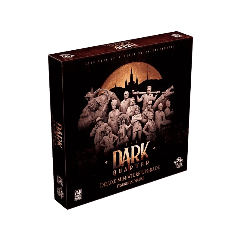 The Deluxe Miniatures Upgrade features 20 detailed miniatures of the most prominent NPCs and monsters found in The Dark Quarter.