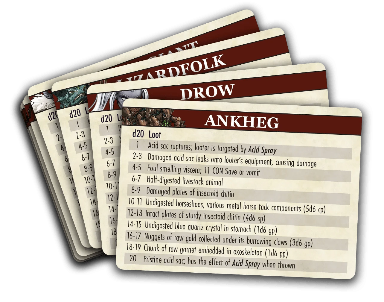- Dynamic Loot Tables: Rollable d20 tables randomize results and excite players with