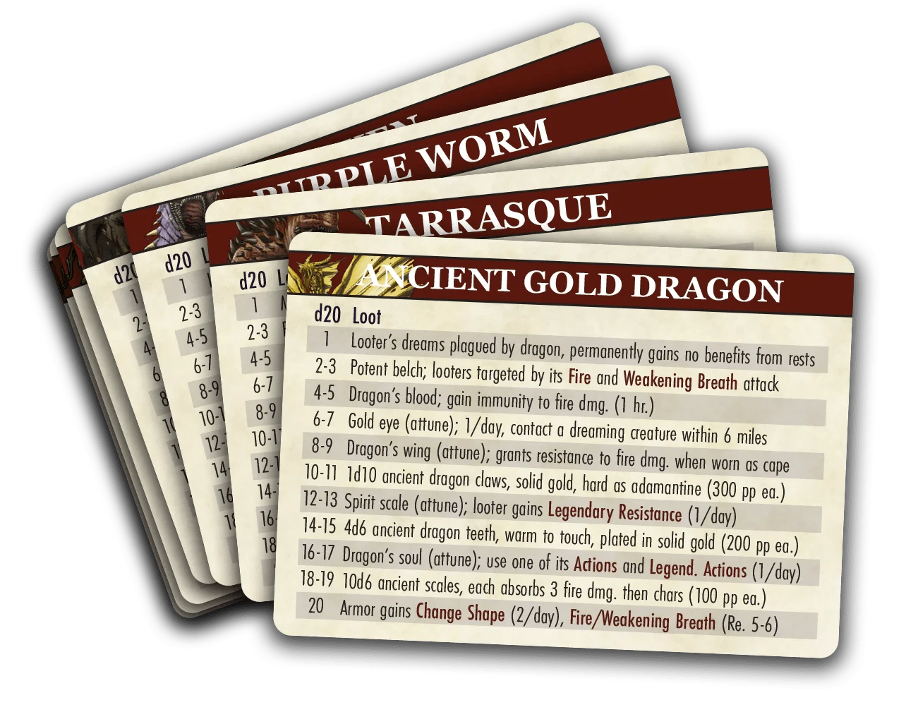 - Dynamic Loot Tables: Rollable d20 tables randomize results and excite players with