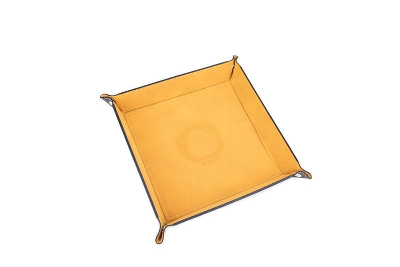 A must-have for any game with dice rolling, this compact, bonded-leather (purely synthetic) dice tray folds flat to easily fit in most game boxes. Snap it into shape in seconds, and you’re ready to roll. The tray is embossed with Elder Scrolls theming and measures approximately 11.5" x 11.5" when flat (9.25" x 9.25" with corners snapped together).