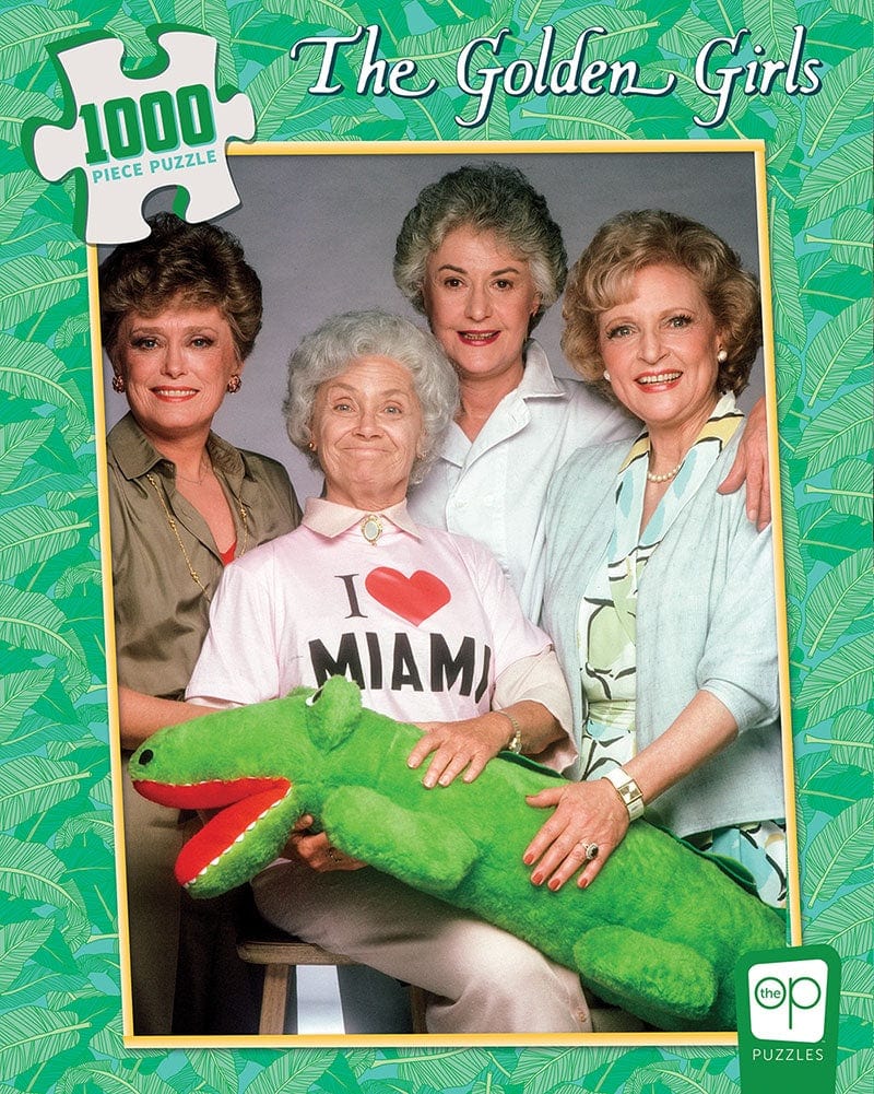Head to Miami and enjoy the lovable foursome of The Golden Girls - Blanche, Rose, Dorothy, and Sophia - in this collectible 1,000-piece jigsaw puzzle. This puzzle will win your heart with a photo of the ladies holding a plush gator that you might say is as snappy as Sofia herself.