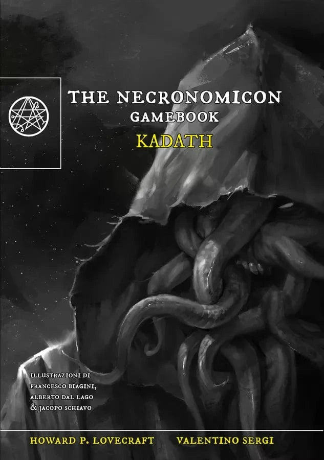 With The Necronomicon Gamebook, a choose-your-own-madness interactive adventure series, you will experience firsthand the horrors told by the great masters of supernatural by using a narration with paths, where, armed with a die and a pencil, you will face monstrous creatures, explore nightmarish territories and cross the border that divides dream from reality. Will you be able to save humanity from a gruesome fate, or will you just go crazy? This pack collects the entire award-winning trilogy (Dagon, Carcosa and Kadath) and includes also a Playset with Dice, Pencil, Map and Bookmark
