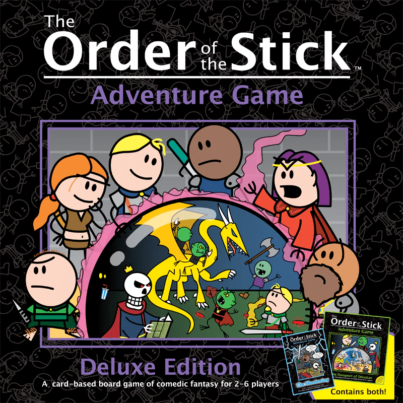 The Deluxe Edition includes the original Dungeon of Dorukan set and the 152-card expansion pack—The Order of the Stick Adventure Game: The Shortening—that lets you play the game leaner, meaner, and faster than ever before.