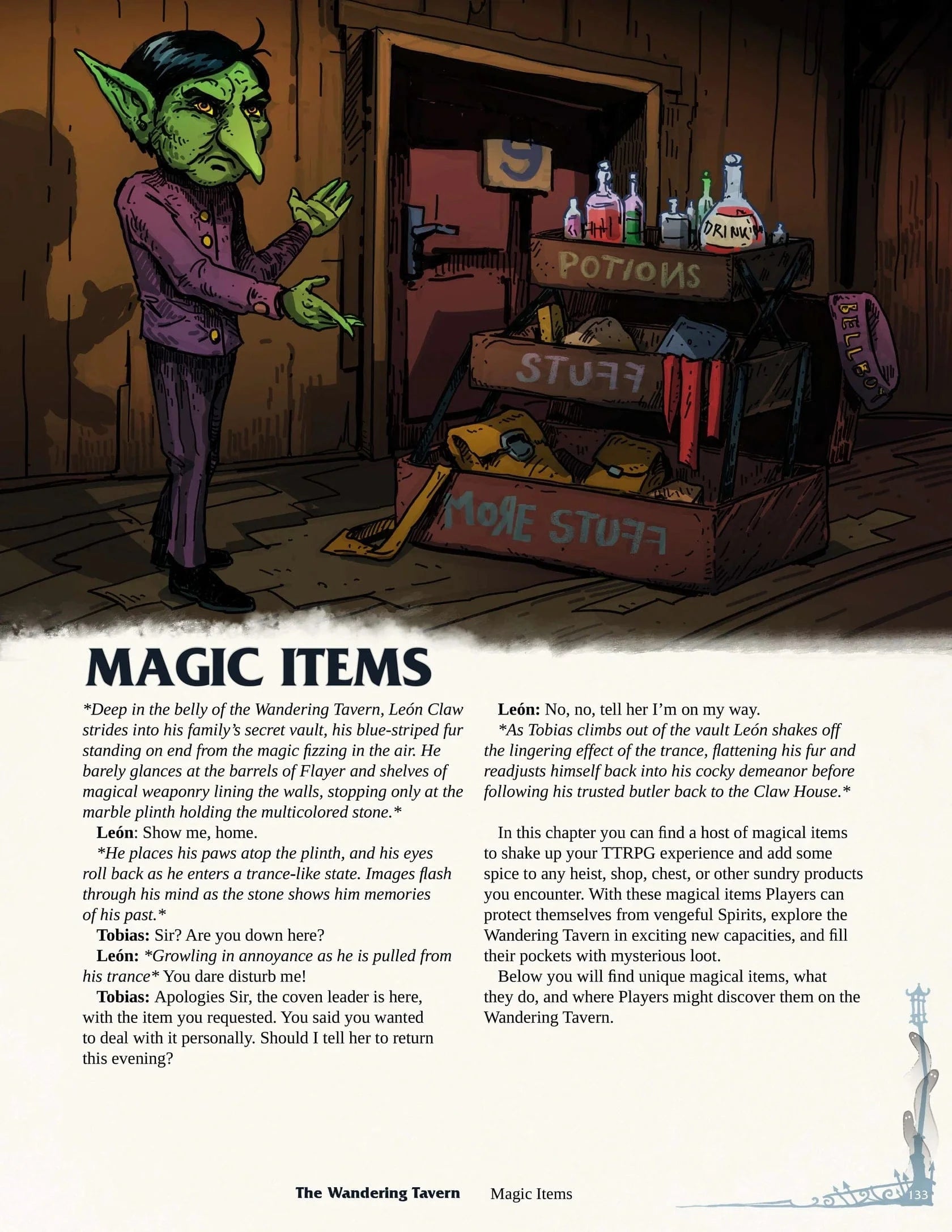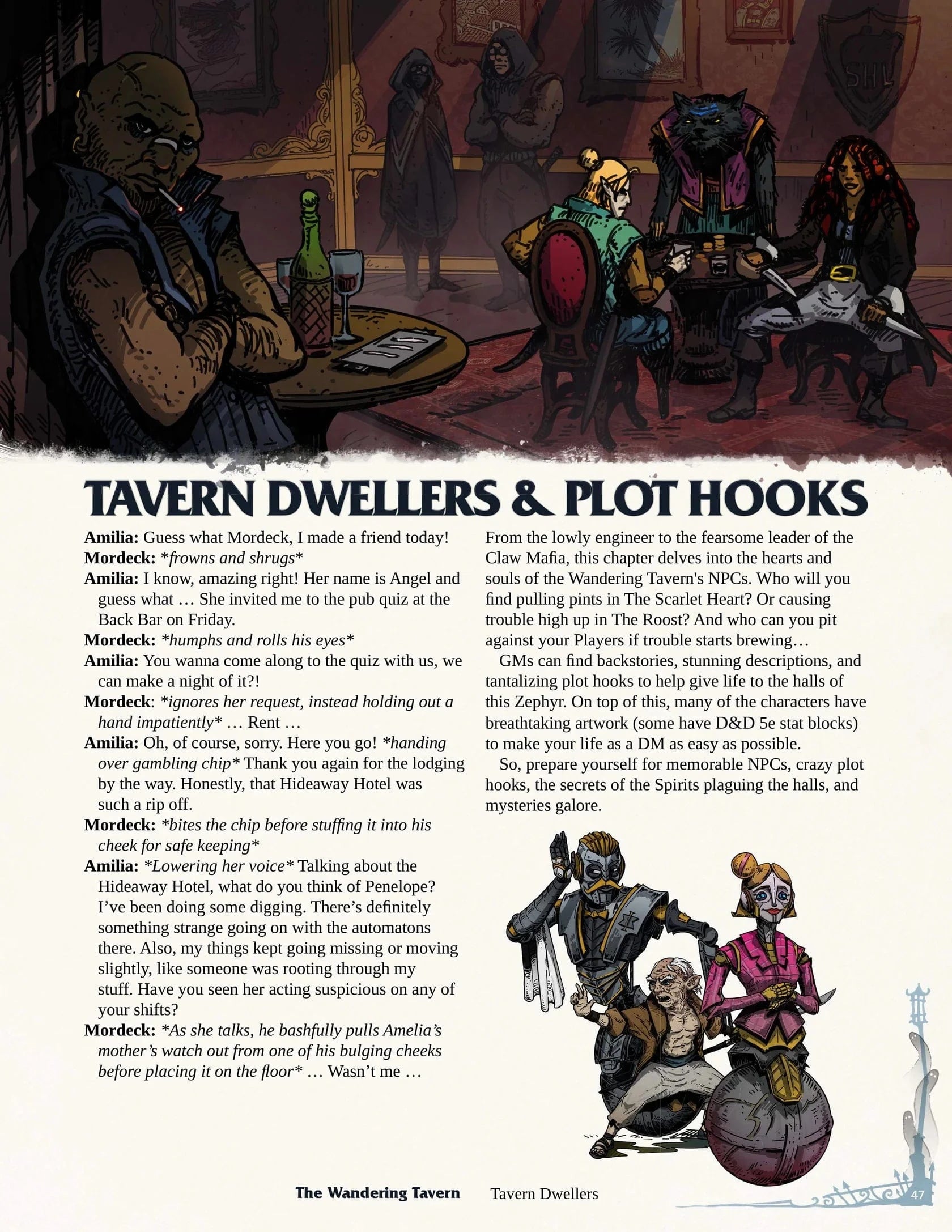It’s packed full of plot hooks, mysteries, threats, and everything you need for a campaign. If, however, you already have an established world/setting, The Wandering Tavern is the perfect pit stop for your Players to visit, take a load off, and delve into a whole new sort of adventure.