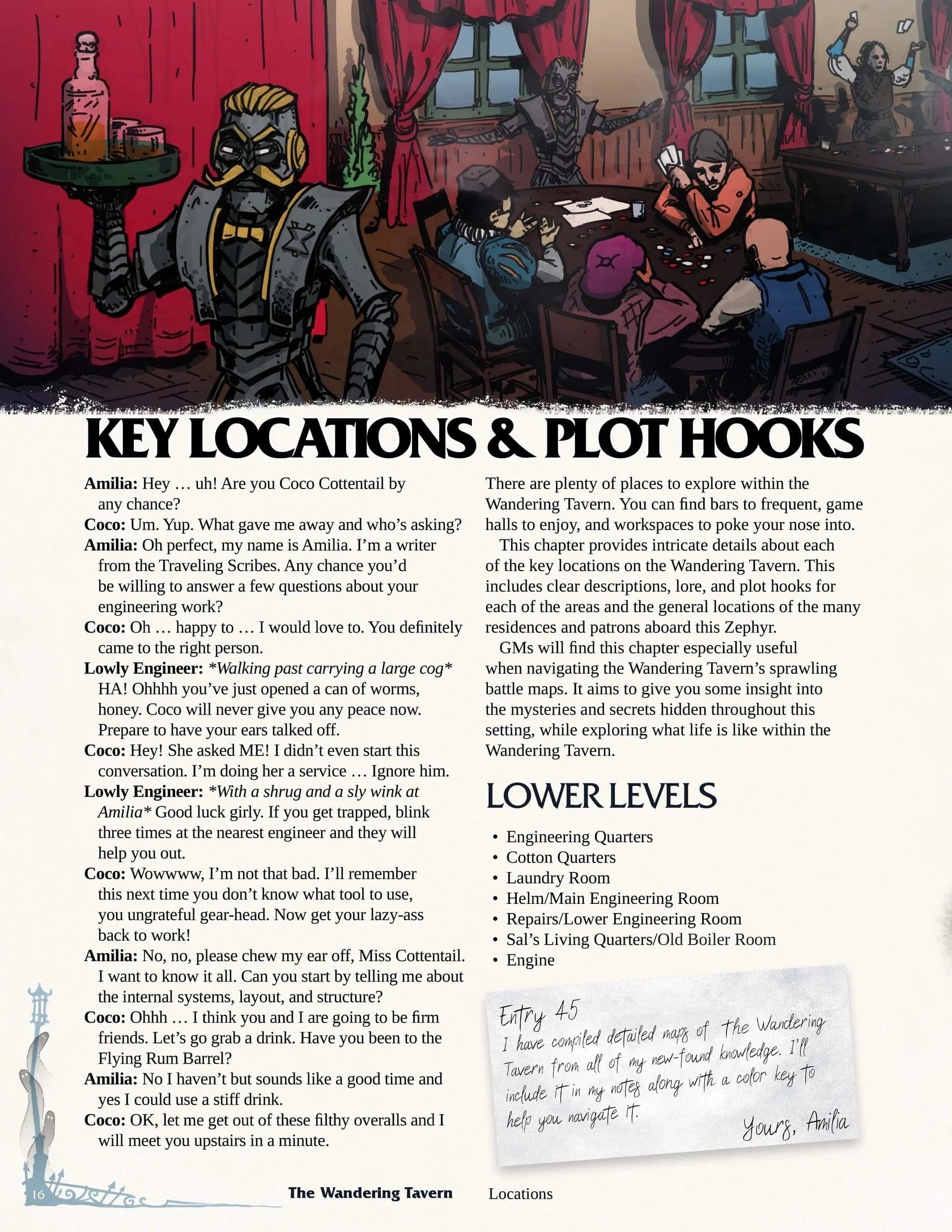 Explore this immense soaring city with 15 battle maps that detail its every nook and cranny. Delve deep into the devious underbelly of the Tavern while getting to know its wide range of unique NPC patrons and staff.