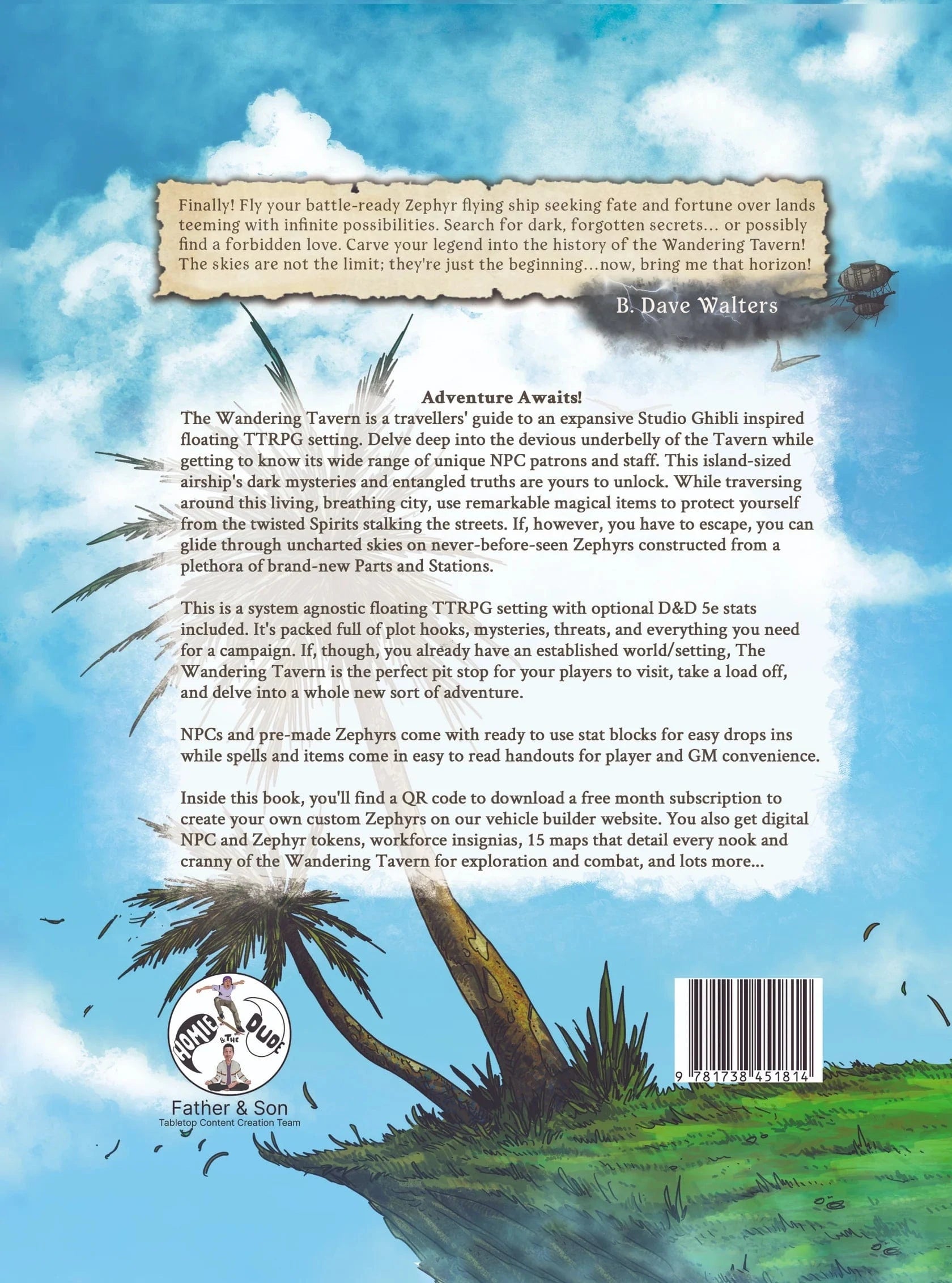 The Wandering Tavern is a Studio Ghibli-inspired System Agnostic floating TTRPG setting (with optional D&D 5e and D&D 2024 stats included).