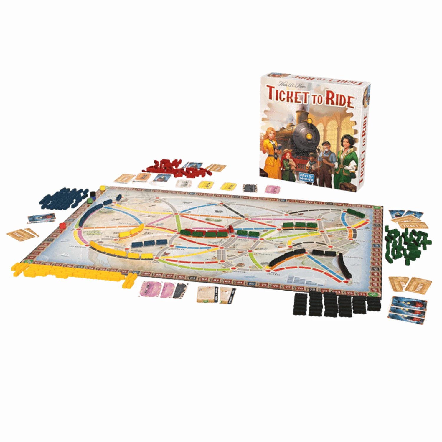 Build your tracks across the United States in Ticket to Ride, a fast-paced and strategic board game for two to five players. In every game, you and your opponents must compete for train cards which in turn allow you to run your trains between iconic American cities. You’ll earn points for every route you complete, but you need to plan for the future—ticket cards can give you many more points if you connect the two cities shown on the ticket. Just be careful: your opponents are competing for the same routes as you!