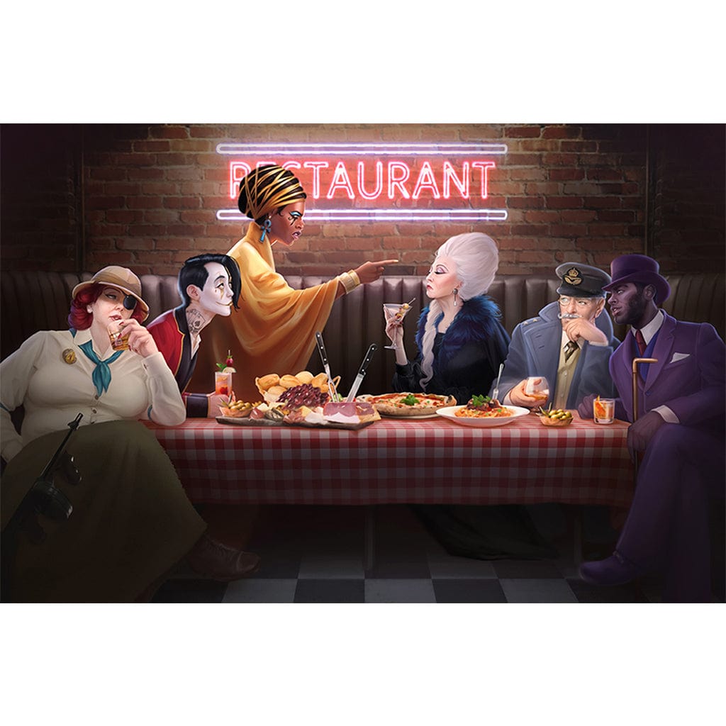 2 Secret Envelopes, 7 Scheme Cards, 4 Cold Case Cards, 1 Patrol Wagon Card, 6 Event Cards, 4 Ability Cards,6 Kingpin Mats, 1 Identity Mat, 6 Kingpin Tokens, 6 Landmark Tokens, 18 Wooden Tokens, 10 Cardboard Tokens, 1 Rulebook.