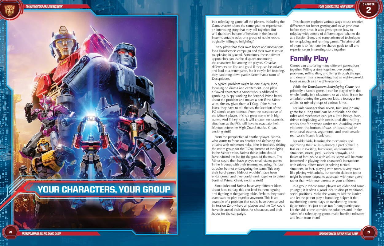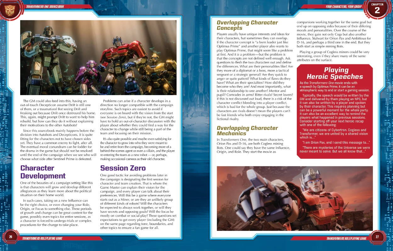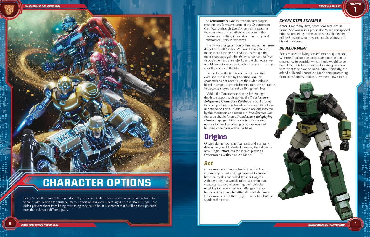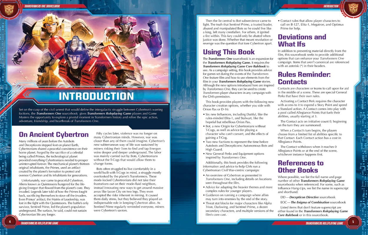 The Transformers One Sourcebook brings your Transformers Roleplaying Game to Cybertron as the inciting moves of the Civil War occur! Join the ranks of bots fighting for a better future or take up the banner of the High Guard in their rebellion against Sentinel Prime with new factions representing the beginnings of the Autobots and Decepticons. Work alongside or battle against the film’s starring characters as you forge a new future for Cybertron with the Matrix of Leadership. Whether you want to play out the events of Transformers One with your group or use the film as a starting point for further adventures, this book has everything you need including: