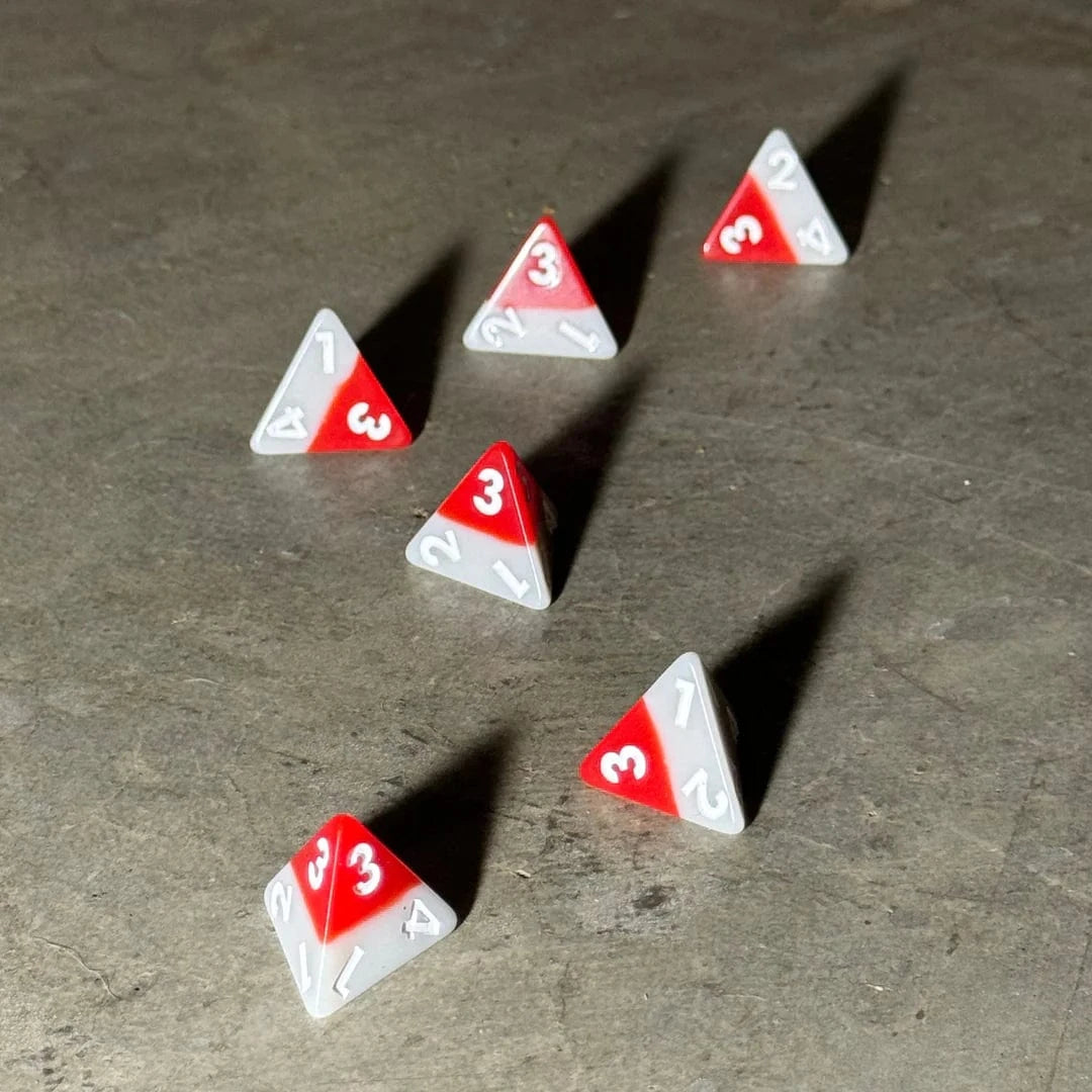 The Triangle Agency Dice Set includes six pyramidal 4-sided dice that highlight the all-important 3’s to streamline rolling even further and keep the story moving at your table.