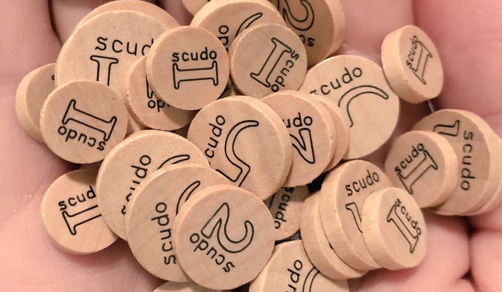 There are 18 goods cards in the game, each with 3 of one good, 2 of another, and 1 of another. The goal of the game is to have the most Scudo (aka money) when the game ends. Each round all players will put one card from their hand in the center, and reveal them simultaneously. Then all players will participate in a Silent Auction, with the highest bidder receiving the most cards and so on down the chain. All players who received any cards pay their bid to the bank, and anyone who did not receive a card (lowest bidders) will pay half their bid rounded down. Everyone will then have the option to put a card they have won up for sale using their own Scudo as collateral for the sale price.