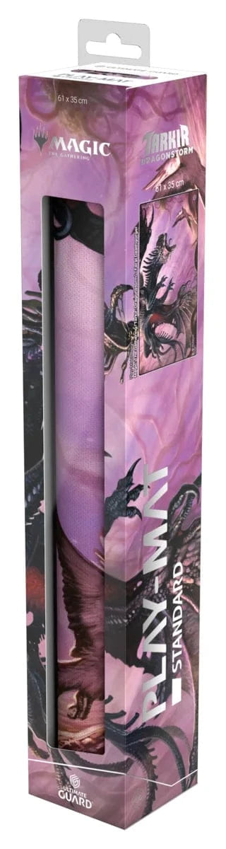 The 61x35cm Play-Mat protects cards and sleeves while playing and improves the gaming experience thanks to its anti-slip underside, while the stitched edges guarantee an even longer service life. The top side of the Play-Mat is printed with officially licensed artworks from Magic: The Gathering's upcoming set "Tarkir: Dragonstorm".