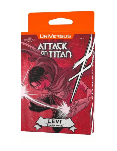 Expose new players to UniVersus through this pair of great introductory decks featuring Mikasa and Levi! These clash decks not only represent a great step into UniVersus for a new player just after they complete a demo, but the characters in these decks are also unique to this product.