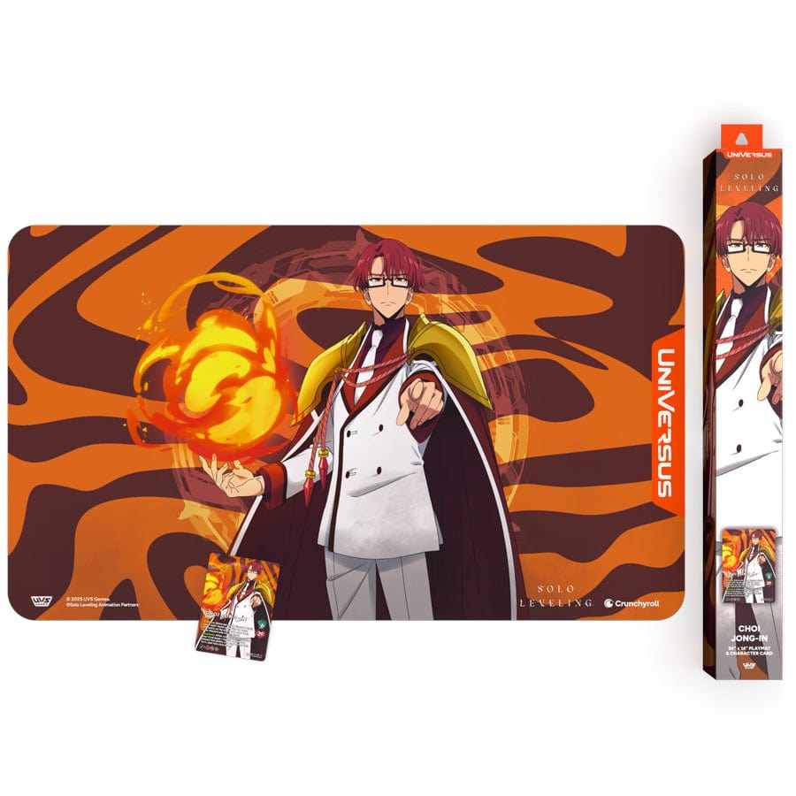 Unleash the beast with the Baek Yoonho S-Rank Hunter Bundle. Known for his commanding presence and beast transformation abilities, Baek’s bundle includes a bold character playmat and a character card featuring reskinned mechanics with art from an alternate universe that channels his raw power. Designed for collectors and players alike, this bundle celebrates one of Solo Leveling’s most iconic frontline fighters in a format ready for display or competitive play.