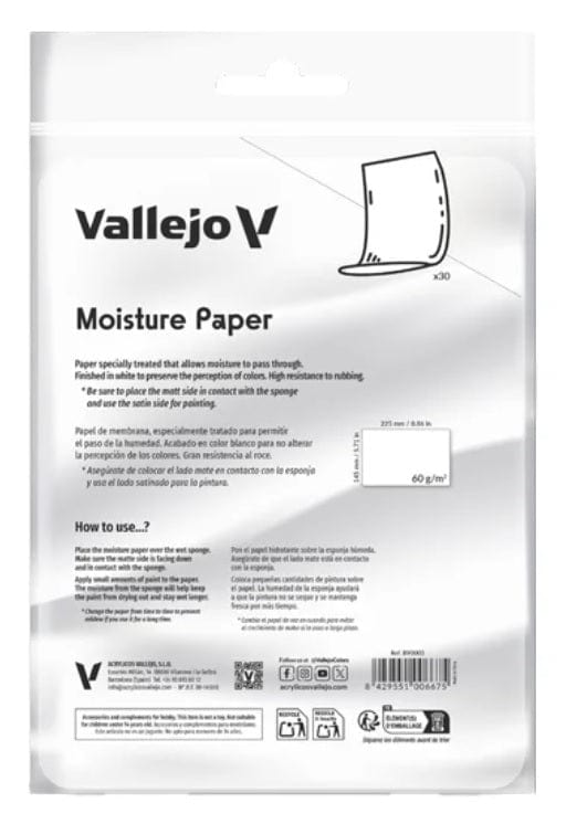 Moisture Paper refill for Wet Palette Pro Painter Size. Paper specially treated that allows moisture to pass through. Finished in white to preserve the perception of colors. High resistance to rubbing.
