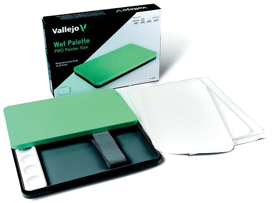 Made of high-strength ABS plastic. Rubber seal between case and lid provides excellent air tightness when closed. Case has non-slip rummer pads to ensure stability. The lid fits under the case to save space. The lid can also be used as a second palette. It has magnets on both sides to attach the Well Palette. Contains: 1 wet palette, 2 hydration sponge, 30 moisture paper, 1 well palette, 1 elastic band
