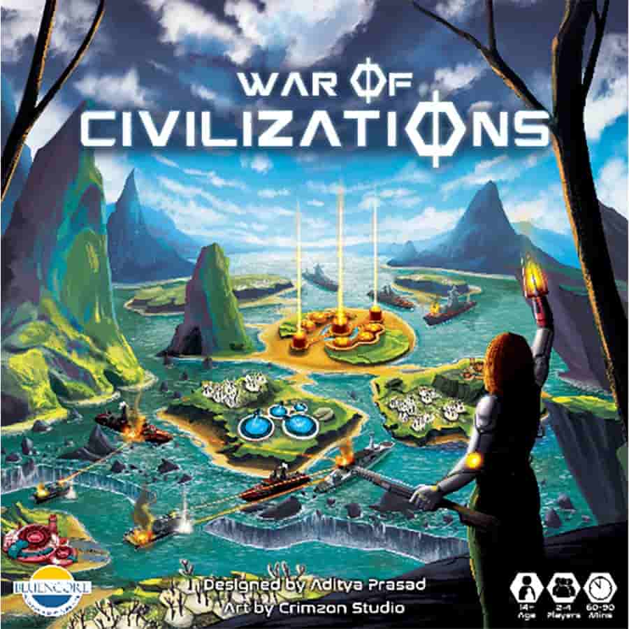 War of Civilizations is a 4x strategy board game set in the year 2050 on a climate change-affected dystopian earth. Players take on the role of clan leaders and compete to gain mystical powers, acquire resources, and build powerful war fleets to conquer land and defeat rival clans. The game requires players to balance their acquisition of powers and resources with their warfare tactics, while navigating the challenges of a harsh, post-apocalyptic world.