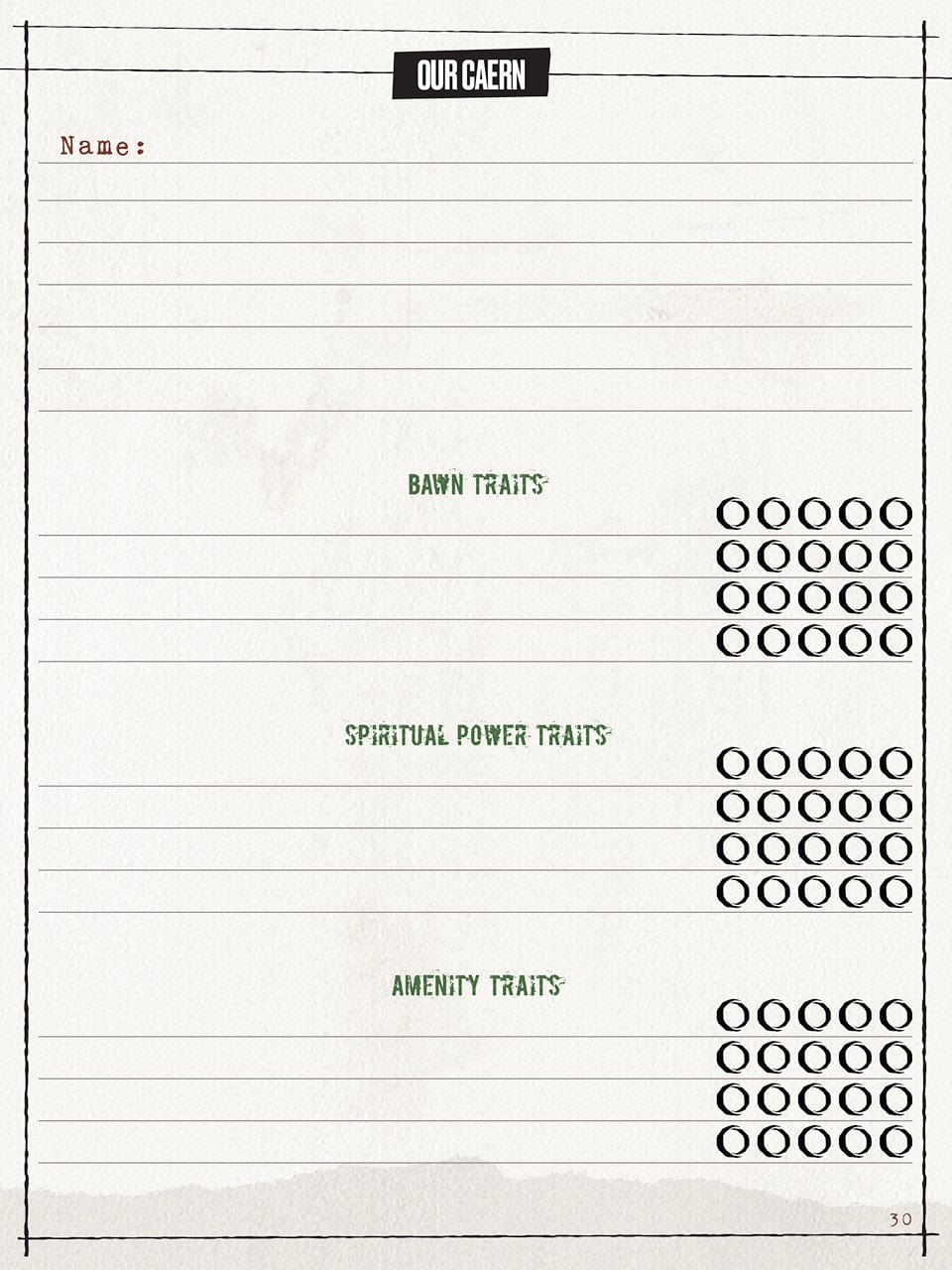 - Prompts to develop and record your character’s history