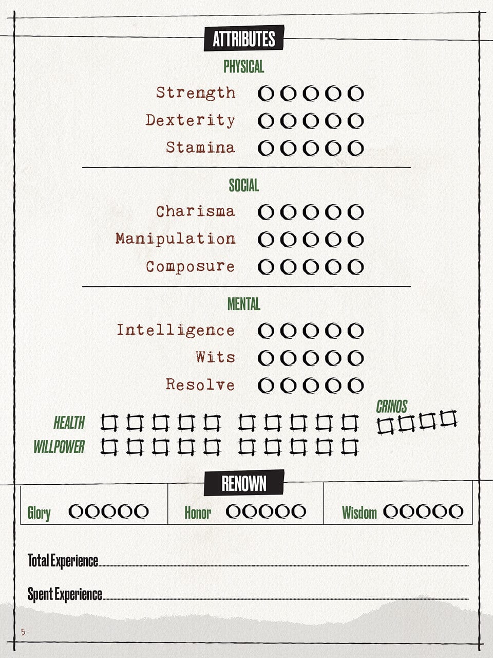 - Expanded Character Sheet Journal for Werewolf: The Apocalypse 5th Edition Roleplaying Game