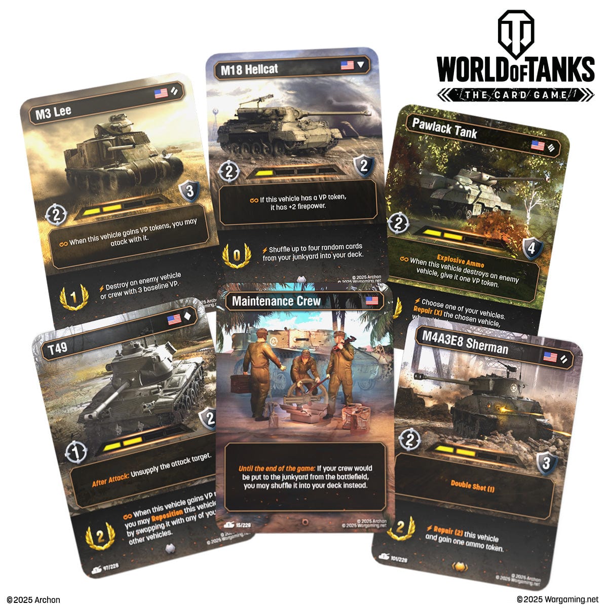 Be a true winner with the USA deck. Manage your cards to gain VP tokens, which will help you trigger powerful effects on your Vehicles. Execute various tricks and attach unique crews to surprise your opponent and take away their advantage on the battlefield. Once you solidify your control over the board, nothing will break through! A good strategy and cold calculation are your keys to victory.