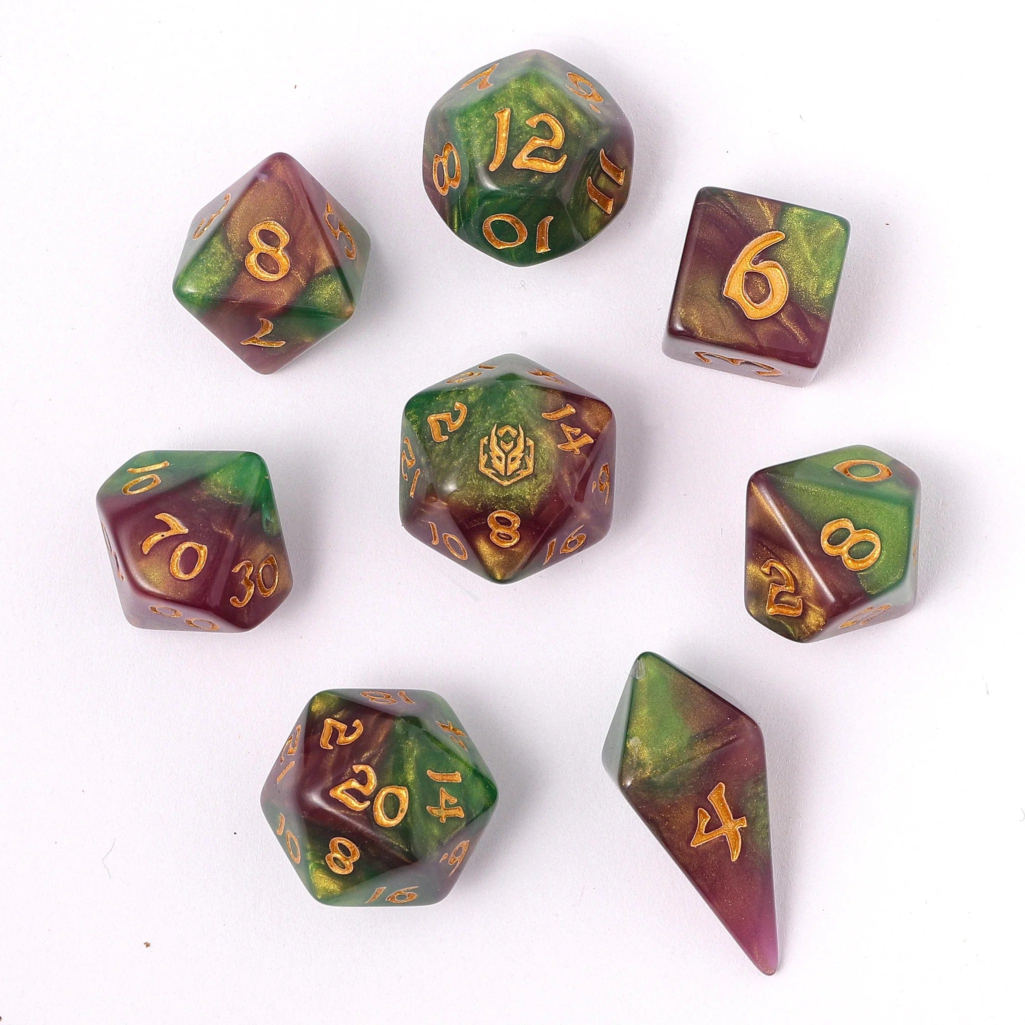 We are thrilled to unveil our latest creation – an 8-piece polyresin dice set, perfect for any role-playing game!