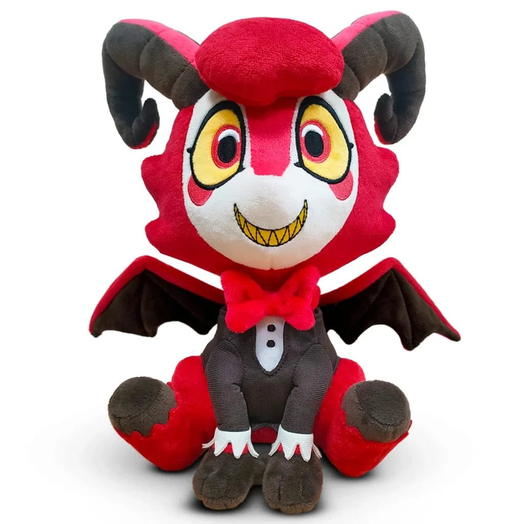 Of course we couldn't let Razzle come in for his Youtooz debut without Dazzle comin' along too! Sitting at 9 inches tall with his hooved feet kicked out wide as small hand rest at their front and lead up to their tuxedoed black and white chest as a bright red bowtie sits at their neck, a pair of huge yellow and red eyes absolutely beam out from their creme colored face as a sharp smile rests in the middle of rosy round cheeks. With long curling black and red striped horns stretching out from the top of his head on either side of a dark red puff of hair and a pair of sharp wings extending from his back, a long black pointed tail wraps around from their back. This plush is packed to the seams with 100% PP cotton and is made of the softest minky material, absolutely perfect for cuddling and being your backup whenever needed!